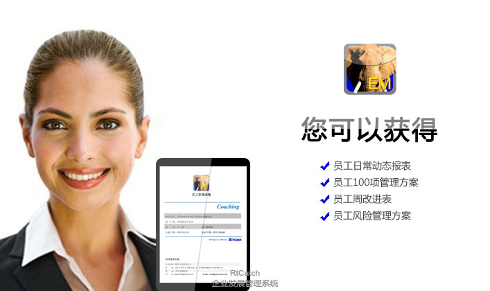 员工管理系统是来自RtCatch专业诊断系统,主要是协助管理者快速掌握员工进行教练管理,利用40年科学数据,提供管理者掌握员工行为管理、信心管理、 共识管理、风险管理等7项员工管理工作,同时对每项分析提供精准的解决方案,使管理者容易上手成为员工教练。